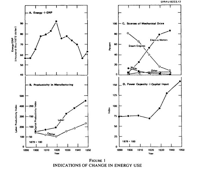 Aber es war nicht nur Hype. Es dauerte vierzig Jahre, aber in den 1920er Jahren ersetzte Elektrizität schließlich vollständig Dampf in Fabriken, was zu einer enormen Produktivitätssteigerung führte.
