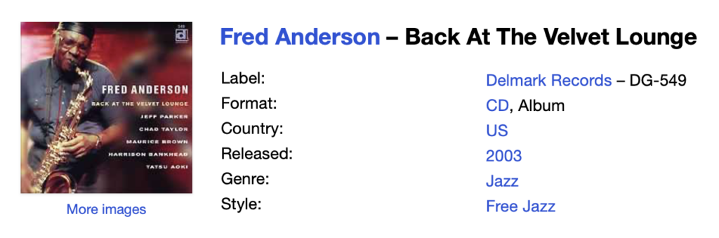Das hier fällt mir wirklich schwer. Da musste ich mich zu zwingen, auch wenn es Passagen gab, die ich dann doch genossen habe. Fred Anderson sagte mir zunächst nichts, wobei ich den Namen sicherlich schon gehört habe. Er ist nämlich einer der Mitbegründer der AACM. Die Association for the Advancement of Creative Musicians spielte eine wichtige Rolle bei der Entwicklung des Free Jazz und bei der Unabhängigkeit der zumeist schwarzen Musiker von der Monopolstellung der großen Plattenfirmen. Independent Music ohne Indierock. Und jetzt, wo ich etwas mehr über Anderson gelesen habe, erschließt sich, dass dies nicht einfach irgendein Live-Album ist. Denn es heißt Back at the Velvet Lounge. Und die Velvet Lounge war Fred Andersons eigener Jazzclub, den er Hauptberuflich betrieb, nachdem er sein Musikerleben über lange Zeit mit Handwerk finanziert hatte (die Quellen sind uneins, ob als Maurer oder Zimmermann). Diese Velvet Lounge wurde so zu einem wichtigen Treffpunkt der Chicagoer Free Jazz Szene und bot dem Nachwuchs einen Ort zum Spielen und Netzwerken.